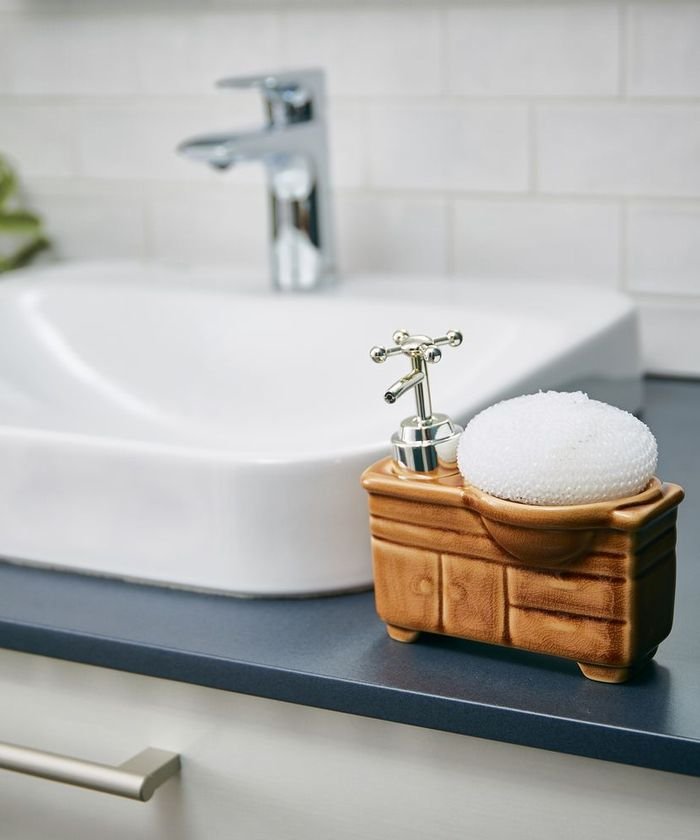 毎日、家に帰ったら手洗いうがい。 小さい頃から習慣になっている日常にユーモアをプラスしてくれます。 洗面台のフォルムをそのまま陶器で仕上げた可愛らしいソープディスペンサーです。 泡立てスポンジ付き。 ※ソープは泡状ではなく液体状で出てきます。