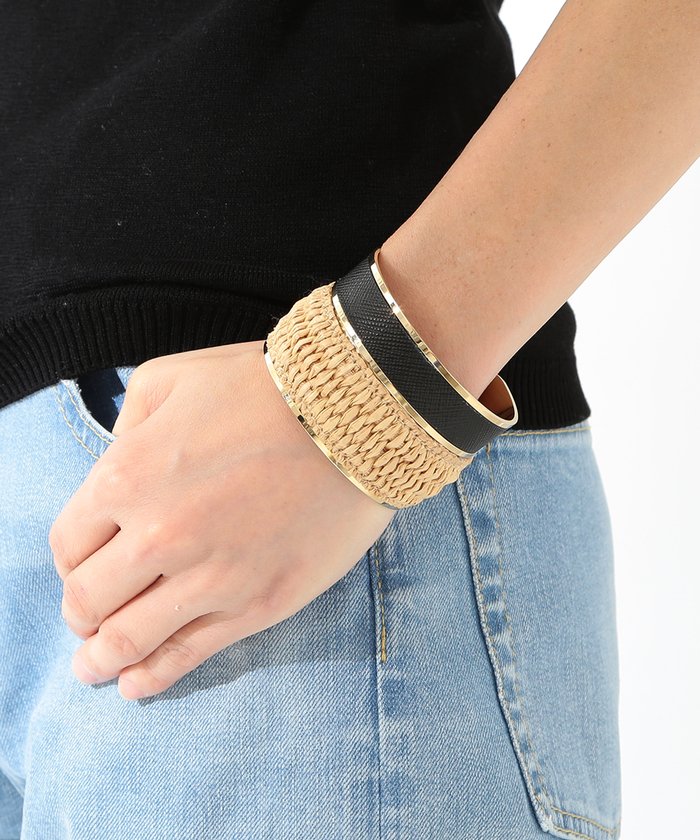 カジュアル&エレガントの美バランス 異素材のコンビネーションが新鮮な太めバングル。シンプルなスタイルに1点投入で、グッとこなれた印象に。ギフトにもおすすめのアイテムです。