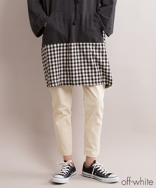 アイテム説明 カラーバリエーションが豊富なテーパードパンツ。 伸縮性があり、ウエストはゴムでストレスフリーで履いていただけます。 シンプルなデザインでトップスは選ばず、柄物にもよく合い デイリーユースにぴったりなアイテムです。 【モデル身長170センチ】