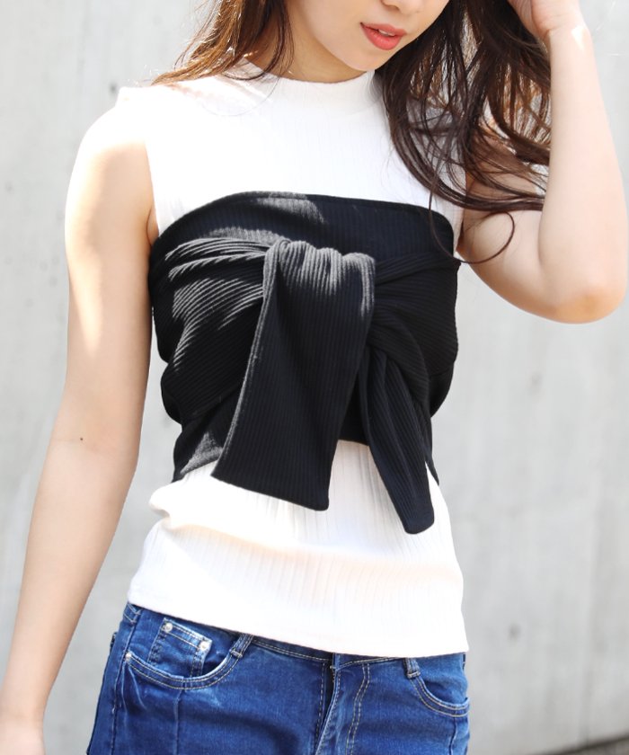 ■前結びデザインが新鮮◎カットリブビスチェ■ コーディネートのアクセントに最適なビスチェが、夏仕様のカット素材で登場。 遊び心たっぷりなリボン結びのデザインが目を惹くデザインです。 ストレッチの効いたリブ素材で、しなやかにフィット。 ショート丈だから、バランス良く着こなせます。 カットソーやTシャツ、ワンピースとも相性◎ 幅広いコーディネートに応用可能な一枚です。 モデル:162cm 着用カラー:ブラック 伸縮性:あり 裏地:なし 生地の厚さ:薄手
