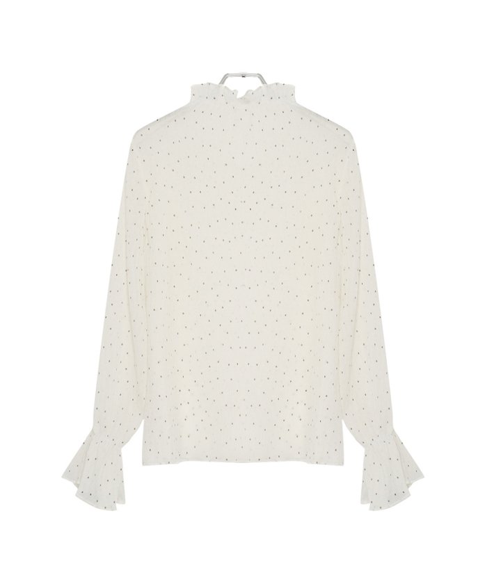 ドット楊柳ボトルネックブラウス