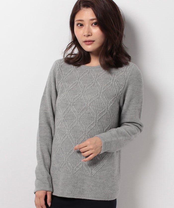 前身ごろにデザイン編みをほどこしたニットプルオーバー。他をシンプルにすることで、柄を引き立たせています。ウーリィな素材感が優しい着心地を実現。無地トップス感覚で着まわせるアイテムです。