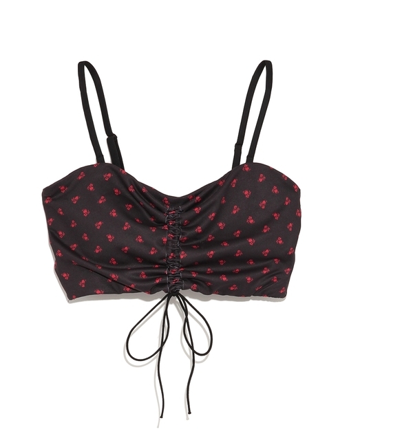【送料無料】 フロントのシャーリングとリボンがアクセントになったカップインビスチェ。シックなプチフラワー柄が、フェミニンムードを後押しします。ストラップは付け外し可能なので、気分に応じてアレンジして。※商品画像はサンプルのため、色味やサイズ等の仕様に変更がある場合がございますので、予めご了承ください。◆着用モデル:身長176cm バスト80cm ウエスト60cm ヒップ87cm 着用サイズ:1 エミ/emmi emmi yoga|ルームウェア・インナー|インナー