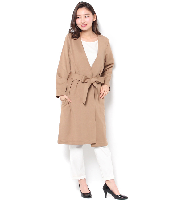 【送料無料】 ストレッチポンチの素材の魅力を活かしたミニマルなノーカラーコーディガン。シルケット加工を施した、艶やかな表面感と豊かな発色性を兼ね備えた、非常に着心地の良いアイテム。カジュアルからフェミニンまで、大人のデイリーコーディネートにオススメな1枚。洗濯:手洗い可 エリオポール/HELIOPOLE ジャケット・スーツ|ノーカラージャケット
