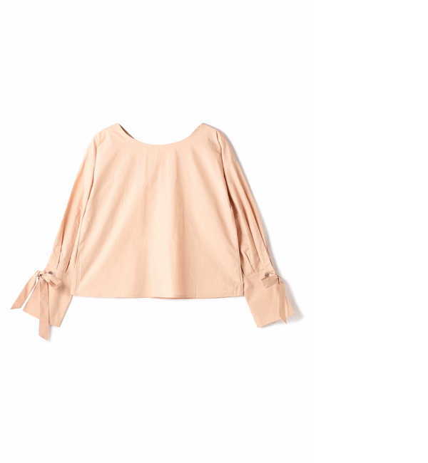 【3000円(税込)以上で送料無料】 リボンの付いたロングカフスの袖デザインが今年らしいブラウス。長めのカフスはそのまま伸ばしても、折り返しても◎クルーネックとVネック、前後どちらでも着用できる2WAY仕様なので着回し力も抜群です。程よいハリ感のあるコットン素材で、カジュアルからキレイめスタイルまで、オンオフ問わず大活躍してくれる1枚です。 フリーズマート/Free’s Mart トップス|シャツ・ブラウス