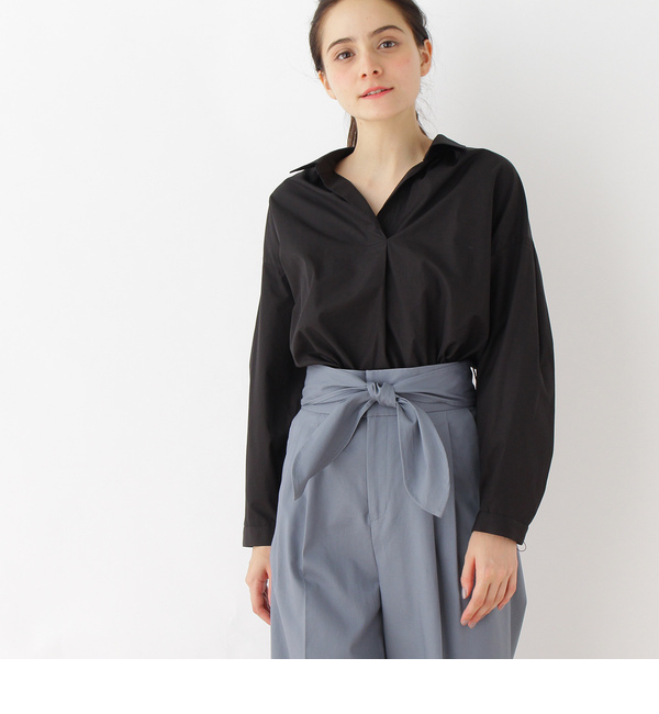 【送料無料】 ハリ感のあるタイプライター生地を使用したシャツ。ドロップショルダーのリラックス感あるシルエットが魅力的です。フロントのタックインデザインもポイント。抜き衿でこなれ感のある着こなしを楽しめる1枚です。モデル情報:身長165cm B79 W60 H88 着用サイズ:38(M)店舗へのお問い合わせ商品番号:528-83202主に秋に着用いただける商品です。 日本製 アナトリエ/anatelier anatelier|トップス|シャツ・ブラウス