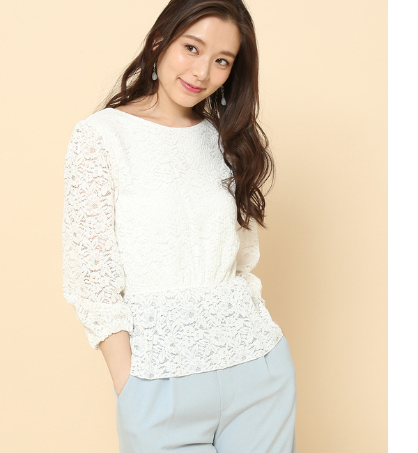 【送料無料】 総レース仕立てのフェミニンなブラウスは、前後逆にしても着用できる嬉しい2WAY仕様。ボートネックとVネックの両方が楽しめ、気分に合わせて取り入れられます。ジャストウエストでギャザーを寄せたペプラムシルエットは、着こなしにメリハリを加えます。身頃はインに布帛を重ねているため、透けを気にせずにお召しいただけるのもポイントです。華やかなジュエリーを合わせて、セレモニーにも対応します。【ITEM】2WAY洗濯又はクリーニングの際は、裏返してネットを使用して下さい。多少色落ちしますので、洗濯又はクリーニングの際、淡色のものとは別にお洗い下さい。淡色製品の場合は、蛍光増白剤の含まれていない洗剤を使用して下さい。洗濯後は脱水してすぐに干して下さい。濡れたまま放置しますと色泣きや他の衣類などに色移りすることがあります。この製品は水洗いで多少縮みます。この製品は、摩擦(特に湿った状態での摩擦)や、汗や雨などで濡れた時は他の衣料や下着(特に白物)に色移りする場合がありますので、十分ご注意下さい。この製品は着用による摩擦作用でピリングになりやすい性質があります。着用後はブラシで毛並を整え、出来てしまった毛玉は糸を傷つけないように小ばさみや毛玉取り器などで除去して下さい。この製品は大変デリケートな生地を使用しています。突起物やアクセサリーなどで生地を引っ掛けないようにご注意下さい。∞-∞-∞-∞-∞-∞-∞-∞-∞-∞-∞-∞-∞-∞-∞-∞-∞-∞-∞-∞-∞※サイズ表は、実物を採寸した実寸です。商品タグのサイズは、メーカー基準サイズとなりますので実寸とは異なります。∞-∞-∞-∞-∞-∞-∞-∞-∞-∞-∞-∞-∞-∞-∞-∞-∞-∞-∞-∞-∞ ロペピクニック/ROPE’ PICNIC Rope’Picnic|トップス|シャツ・ブラウス