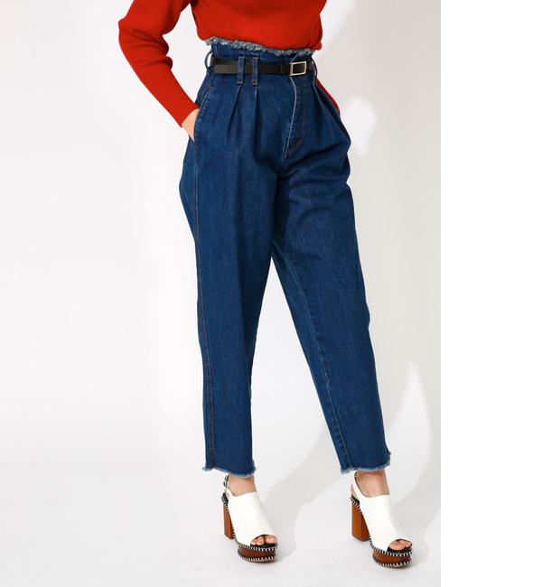 【送料無料】 タックデザインで腰回りにボリュームを持たせたデザインデニム。裾にかけて少し細くなるNEWシルエットです。ベルトがセットになっているので、トップスをインしてきっちりとした印象でスタイリングしたい。長すぎない丈感もポイントなので、ローファーやスニーカーといったシューズとの相性も良いです。 マウジー/MOUSSY パンツ|デニム