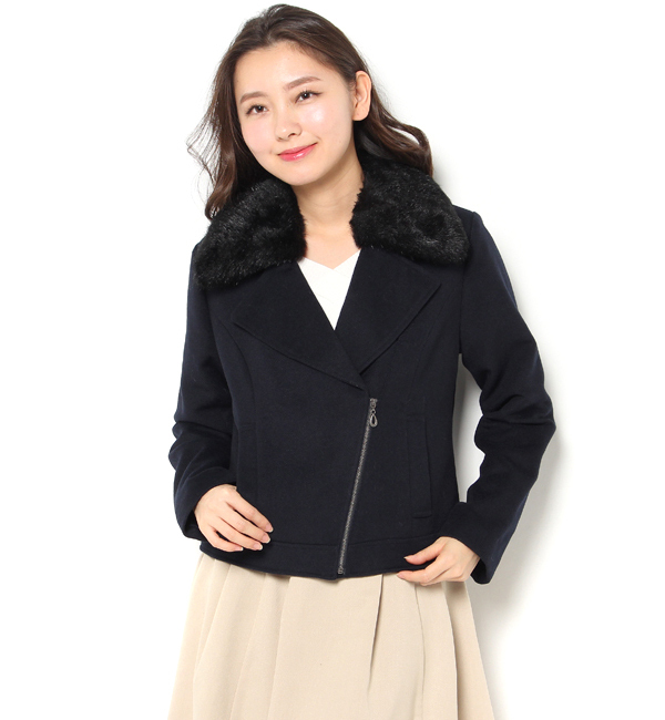 【送料無料】 ファーがついた使いやすいライダースジャケットです♪もちろんファーは取り外し可能です!!フェミニンなボトムとコーデすると◎ ルゥ デ ルゥ/Rew de Rew ジャケット・スーツ|ライダースジャケット