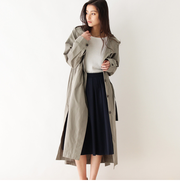 【送料無料】 長めの丈感のフーデットコートです。トレンチコートに使用されるようなハリと微かな光沢があるツイル生地を使用。ソフトな起毛感もあります。裾に深く入れたスリットがポイント。ウエストとフードのベルトのシール遣いもアクセントになっています☆ さらりと羽織りやすい生地感は春先にぴったり。カジュアルにデイリーに着回せるアウターです。モデル情報:身長163cm B83 W63 H88 着用サイズ:02(M)店舗へのお問い合わせ商品番号:C58-94004 インデックス/index index|アウター|その他