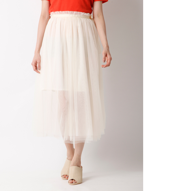 【送料無料】 チュール素材を使用した上品なロングスカートです。透け感のあるシースルー素材を使用しているため,清涼感のある仕上がりで、これからのきれい目な着こなしで大活躍します。組み合わせるシューズによって、ひと味違ったスタイリングをお楽しみ頂けます。・裏地なし ・ペチコート付き マルシェ ド クリアインプレッション/MARCHE de CLEAR IMPRESSION CLEAR IMPRESSION|スカート|スカート