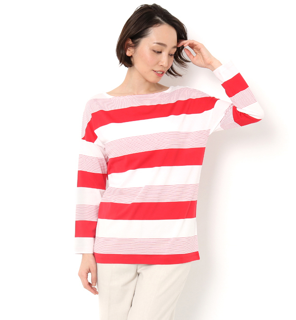【送料無料】 異なるピッチで遊び心を効かせたボーダーカットソー。今回エリオポールのためだけに別注。ラグランシルエットでゆとりを持たせたデザインで大人のフレンチカジュアルが叶います。襟ぐりは前後Uネックになっており、少し抜けた雰囲気がどこか女っぽい1着。【raspail】「raspail(ラスパイユ)」は、セーヌ川の南、パリの14区にある、中世からの古い街並みと現代のモダンな建築物に彩られた町の名前。この町の風景からインスピレーションを受け、飽きのこないベーシックとモダンテイストを併せ持つコレクションを展開しています。 エリオポール/HELIOPOLE トップス|Tシャツ・カットソー,プルオーバー