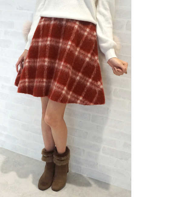 シャギー チェック フレアー スカート