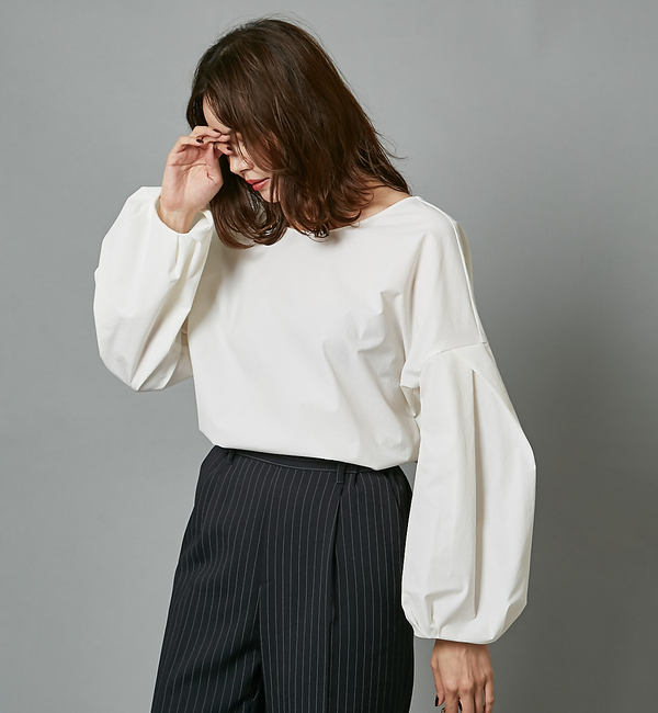 【送料無料】 ボリュームスリーブがポイントになったトレンド感のあるブラウス。衿ぐりは後ろ下がりを深くし、抜け感をだしたディティールに仕上げました。マットでハリ感のある素材を使用しているのでフェミニンになりすぎず、大人女子に嬉しいアイテムです。(ブラック)model:H160・B80・W59・H86 着用サイズ:38(ホワイト)model:H167・B84・W58・H86 着用サイズ:38 カリテ/qualite qualite|トップス|シャツ・ブラウス